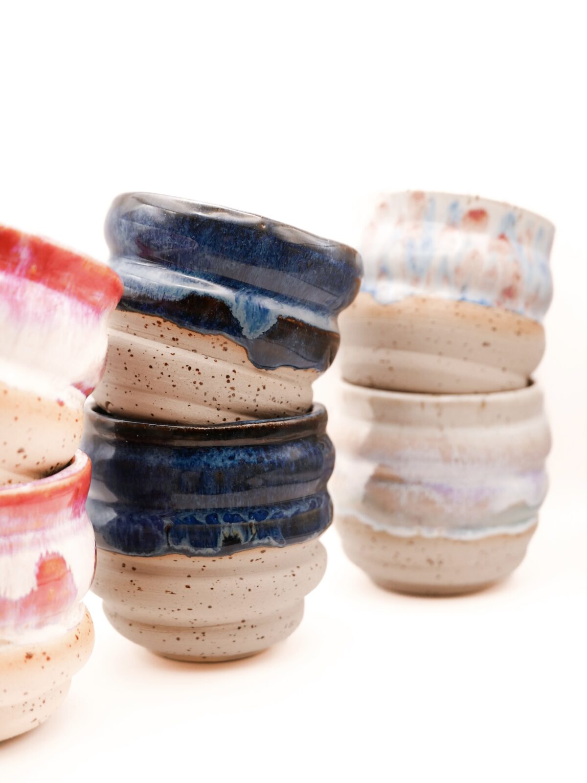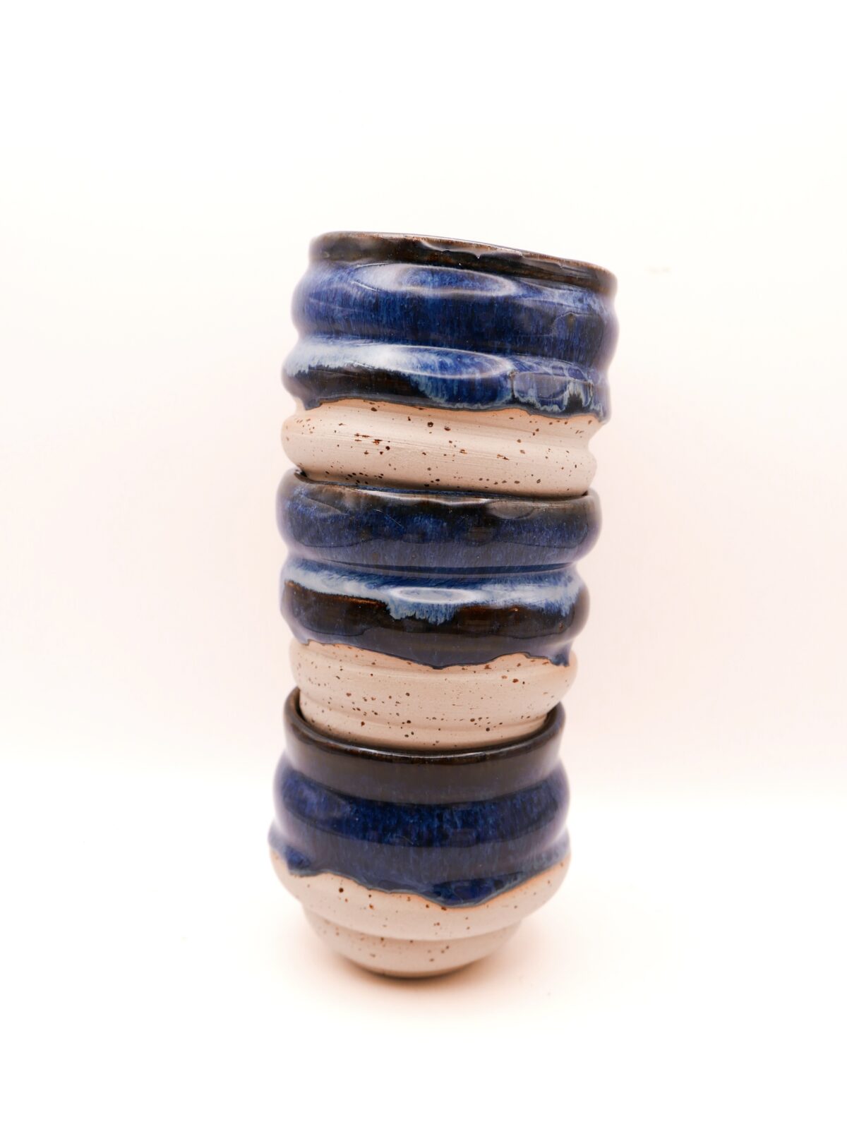 Wybrzuszona czarka wytoczona na kole z użyciem unikalnej przepiórczej gliny. Posiada efekt ociekającego granatowego, lśniącego lukru, który przypomina kosmos. 🌌✨