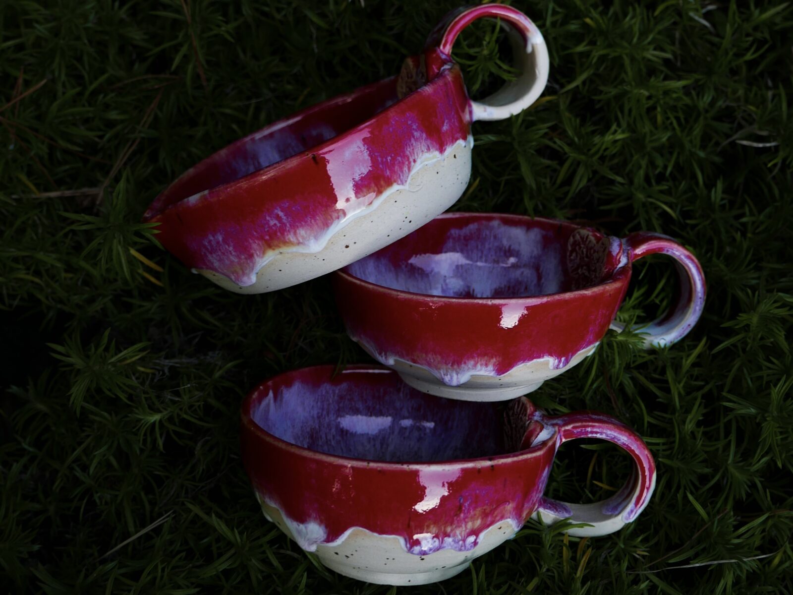 • Miseczka została całkowicie wytoczona na kole z użyciem przepiórczej gliny i poszkliwiona klimatycznymi jesienno – zimowymi odcieniami – czerwień i śnieżna biel nadają jej klimat świąteczny.❄️🎅