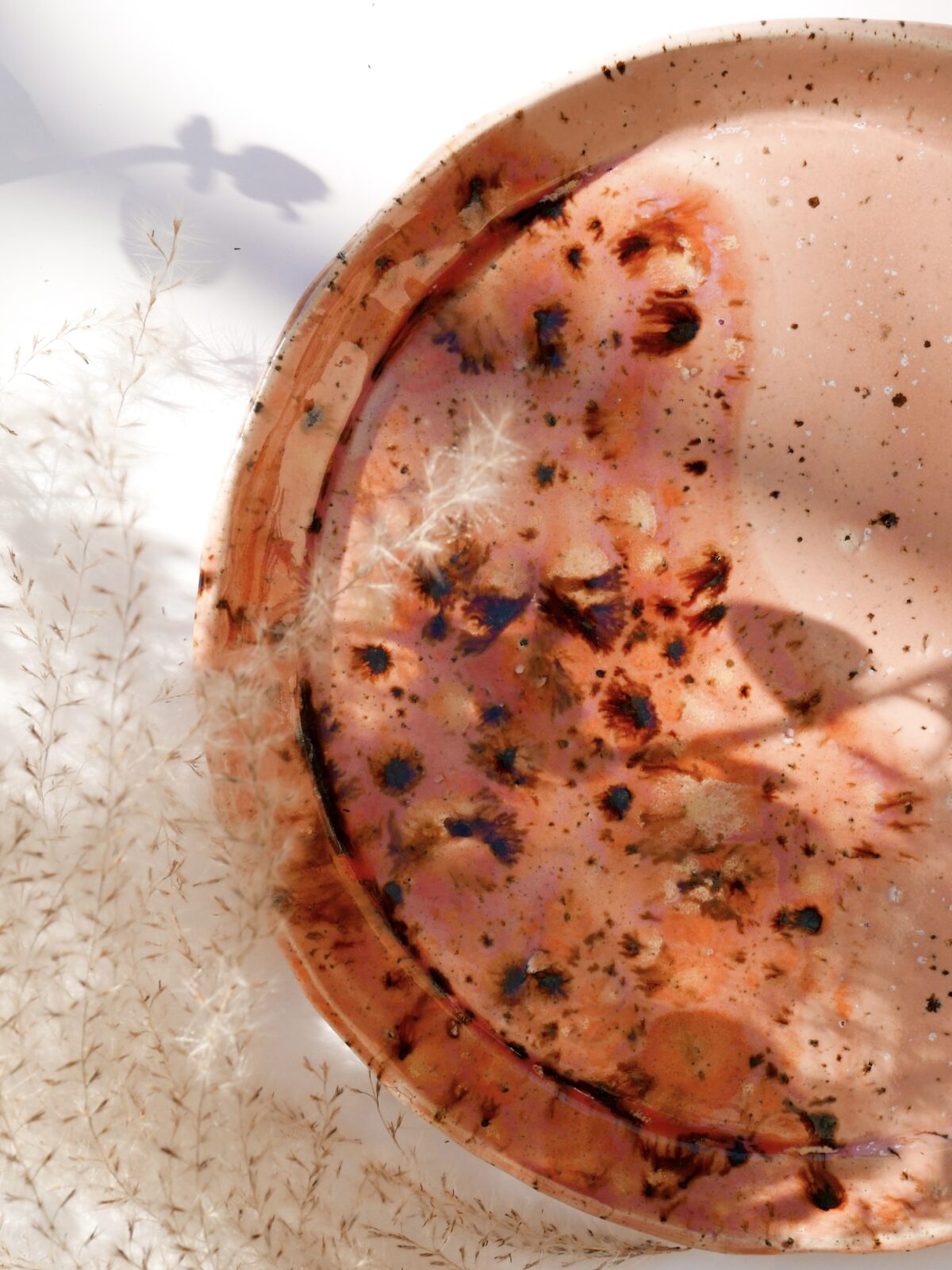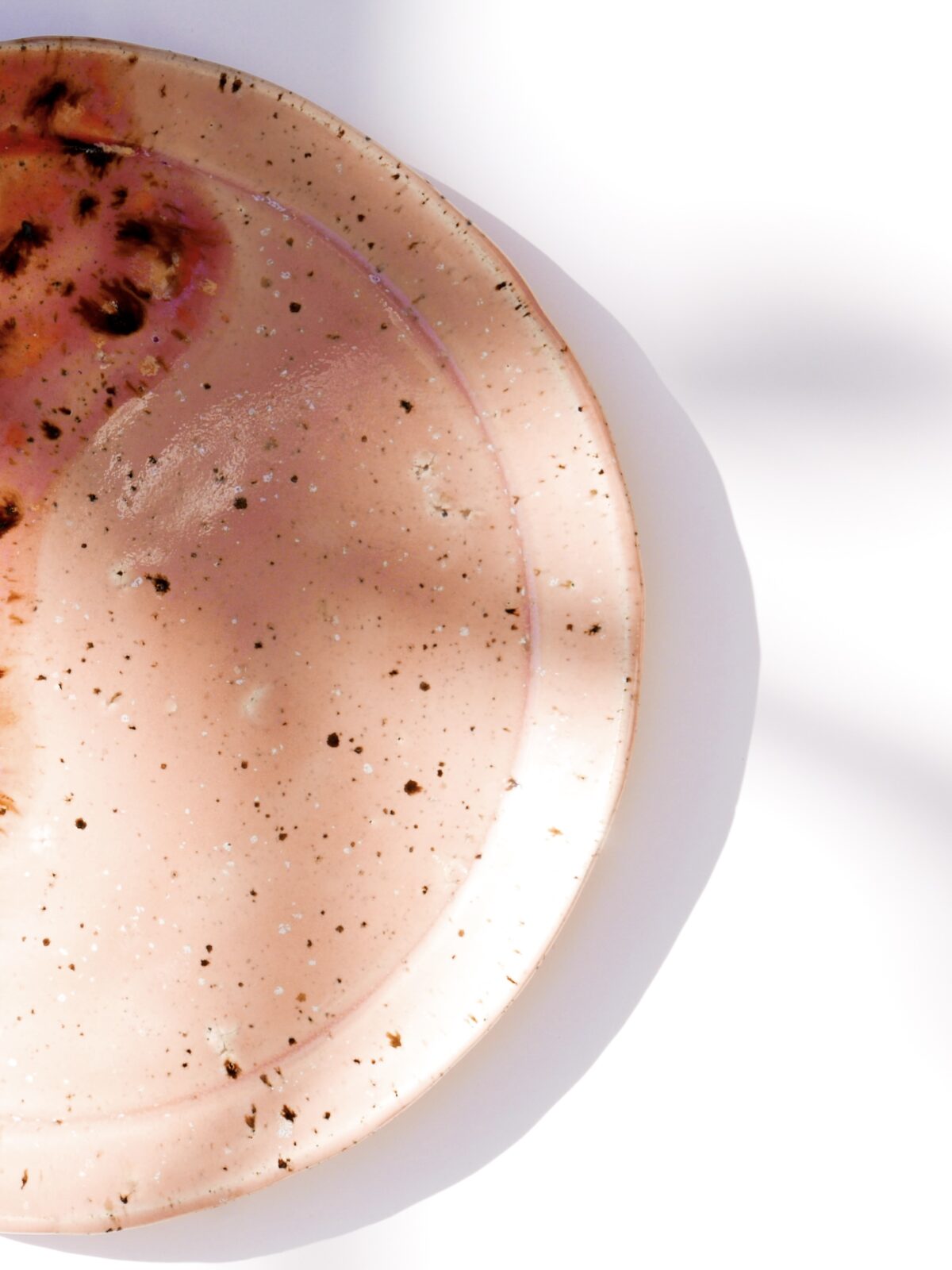 Talerz wykonany własnoręcznie z wyjątkowej białej przepiórczej gliny. Pudrowy róż i odcień koralowy w połączeniu z ciapkami na glinie nadają mu magiczny efekt💞✨