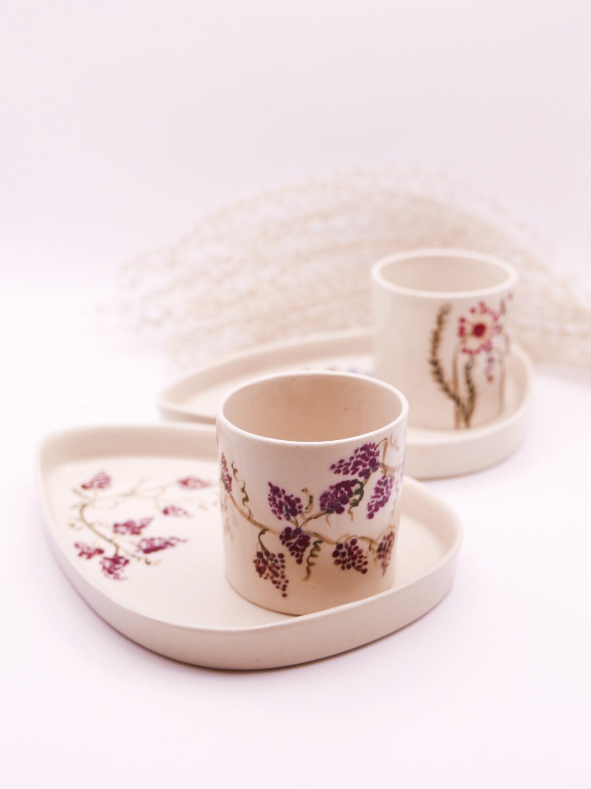 Zestaw do espresso kubeczek + talerzyk odlewany z gliny białej porcelanowej z własnoręcznie namalowanymi kwiatami łąkowymi. 🌾💐