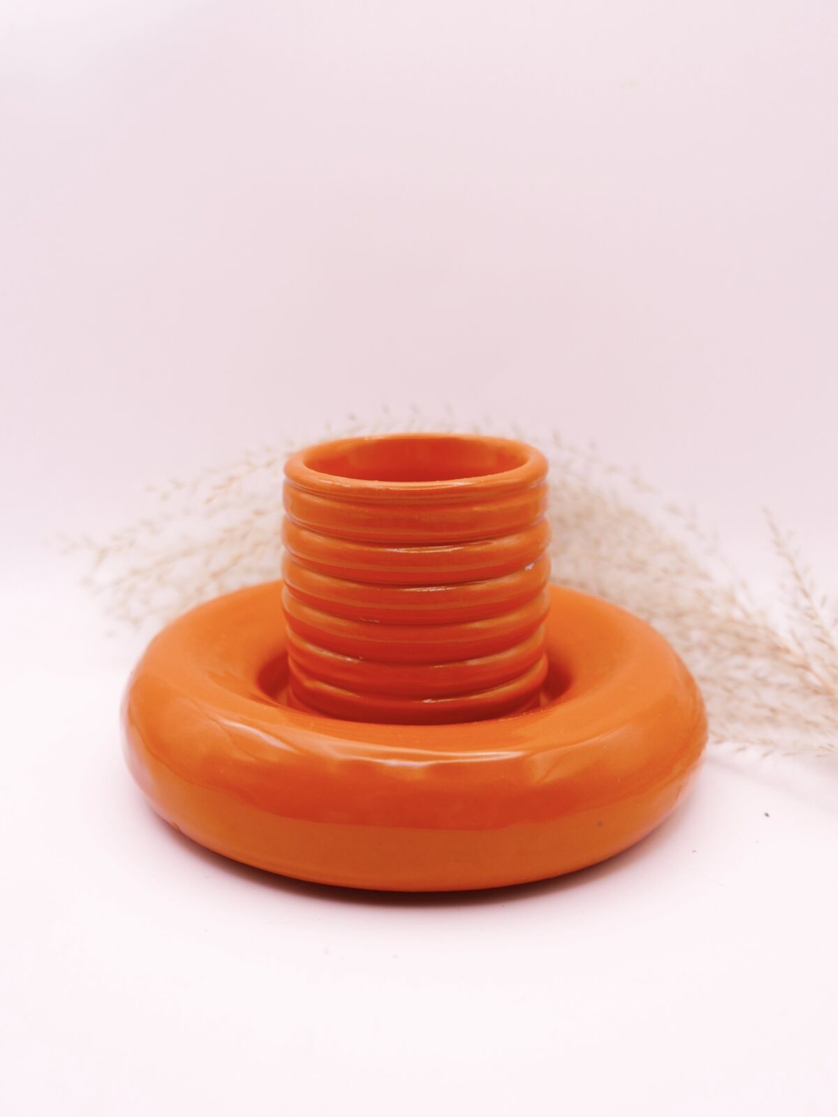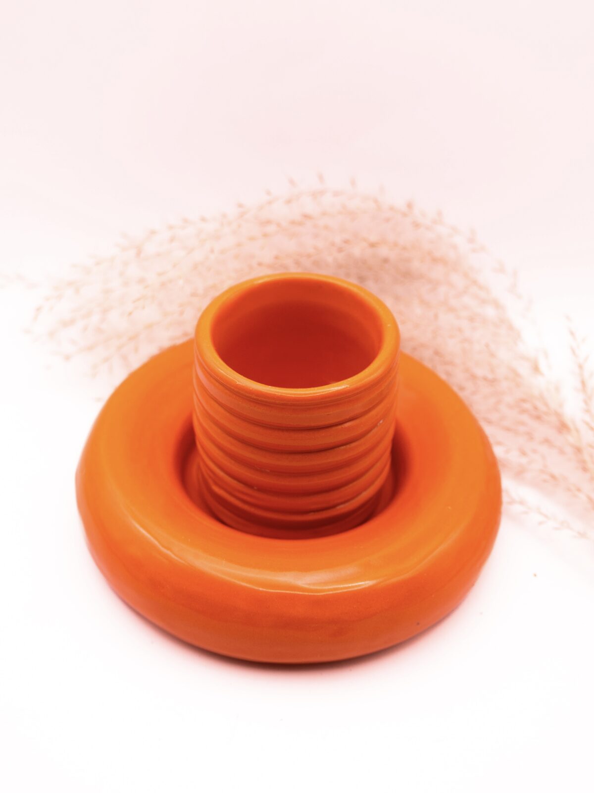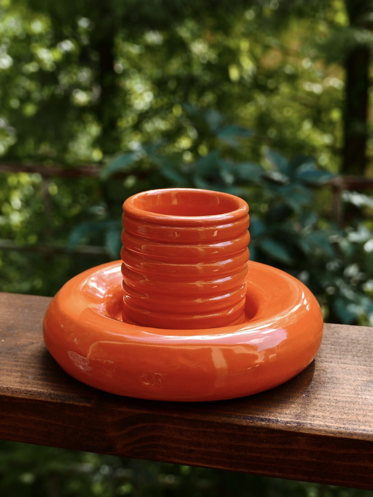 Zestaw kubeczek do espresso brzuszek + talerzyk pączuś całkowicie wytoczony na kole w odcieniu marchewkowej pomarańczy.🧡🥕