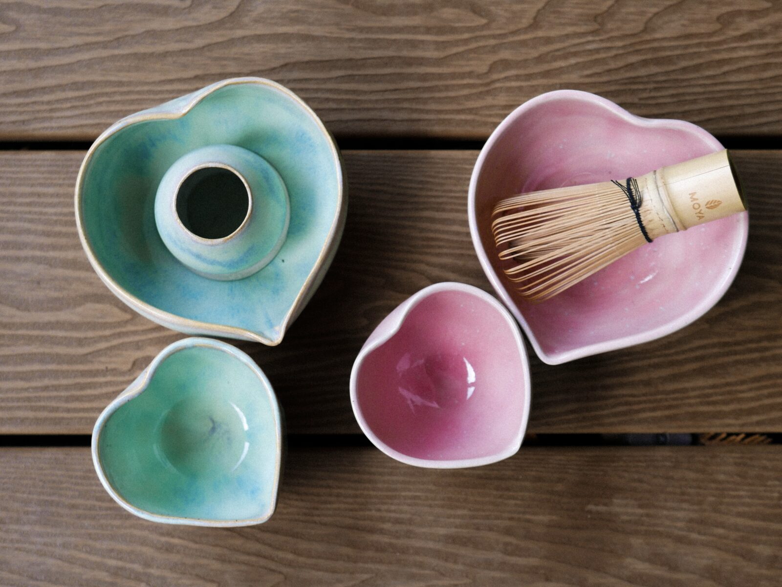 Zestaw serduszkowy składający się z czarki i miseczki, to mały rytuał zamknięty w delikatnych, kremowo-zielonych barwach z efektem ociekającego lukru.